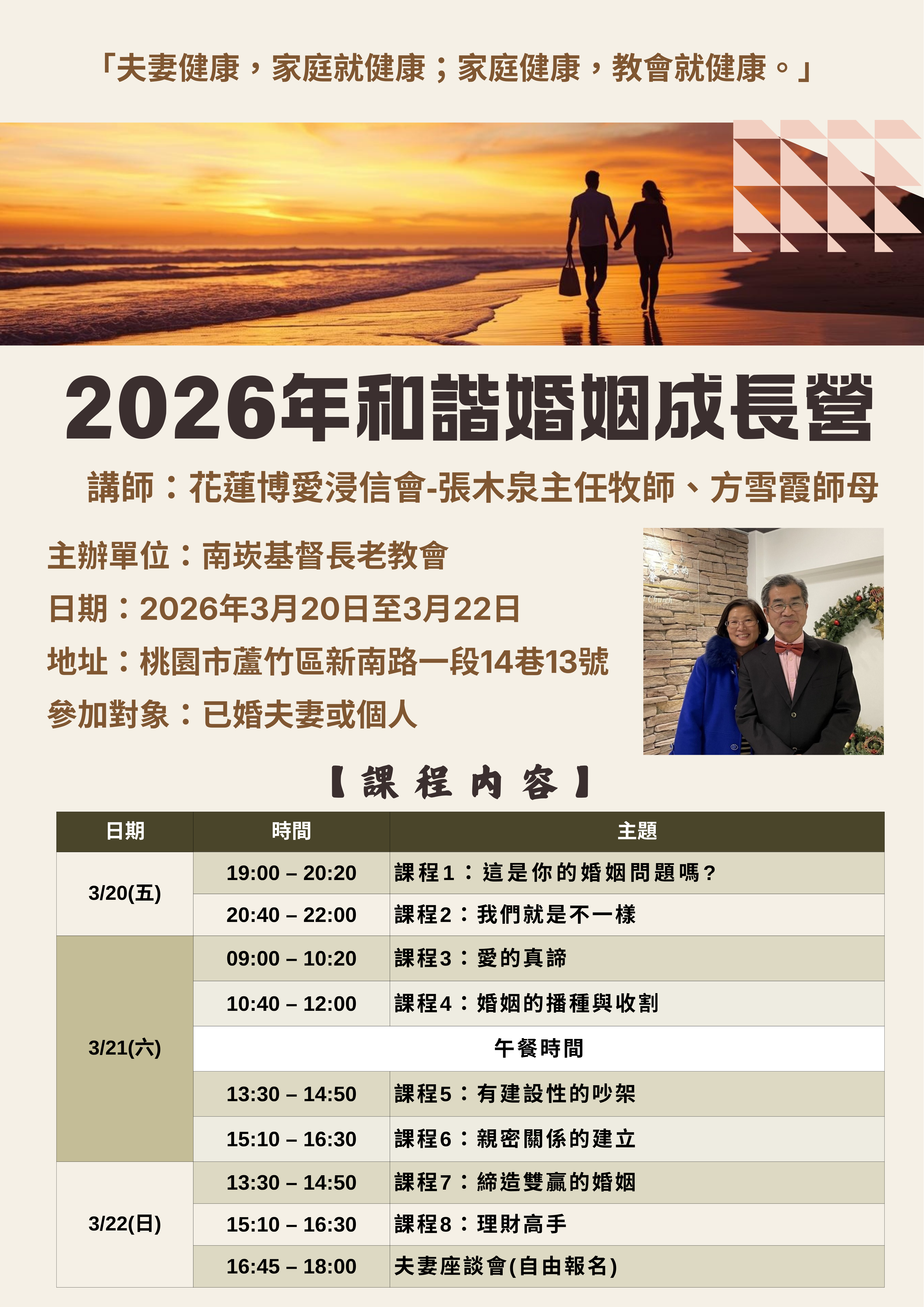 營會 ║ 2026 和諧婚姻成長營 (已額滿)