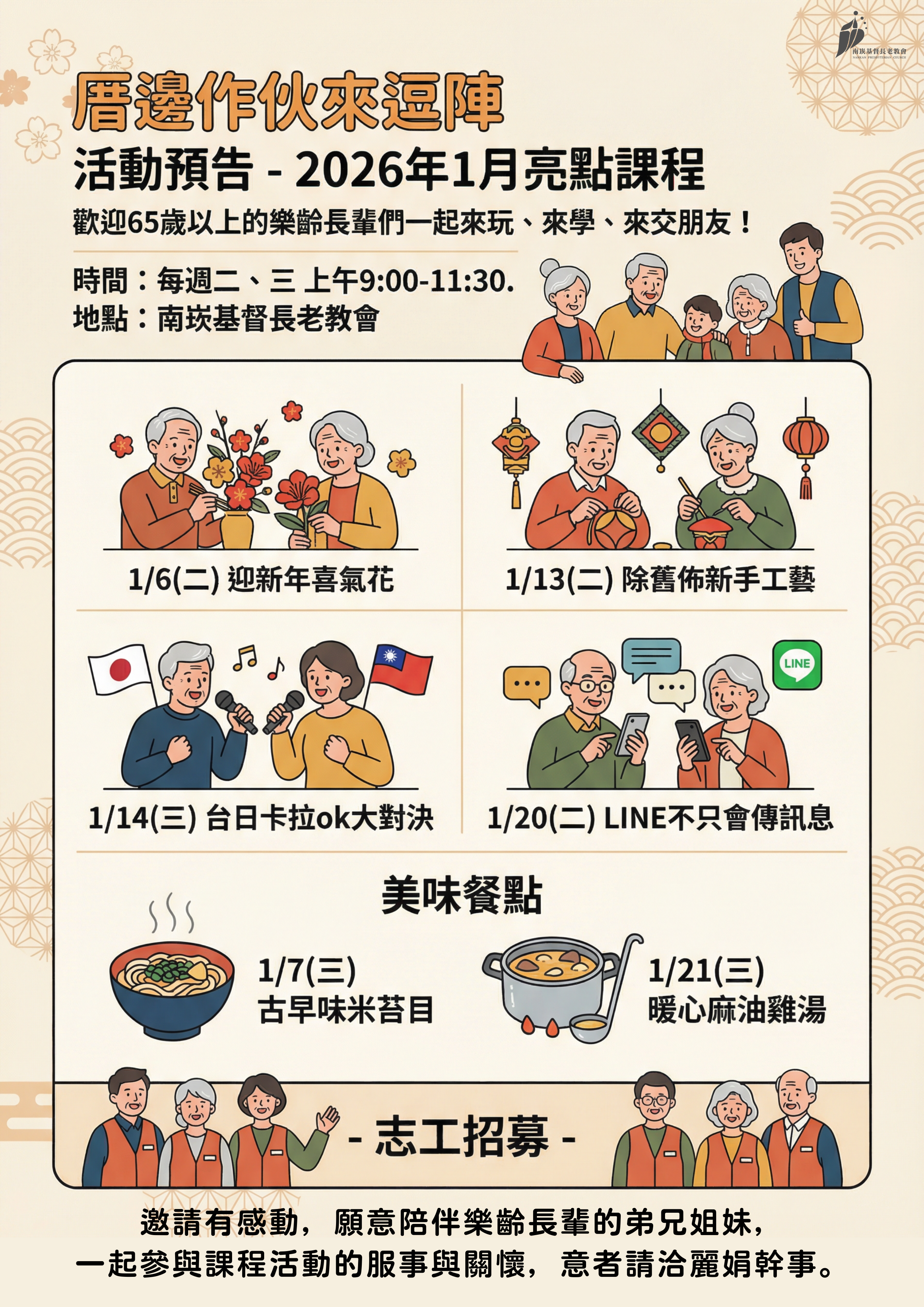 樂齡專屬 ║ 厝邊作伙來逗陣【2026年1月亮點課程】